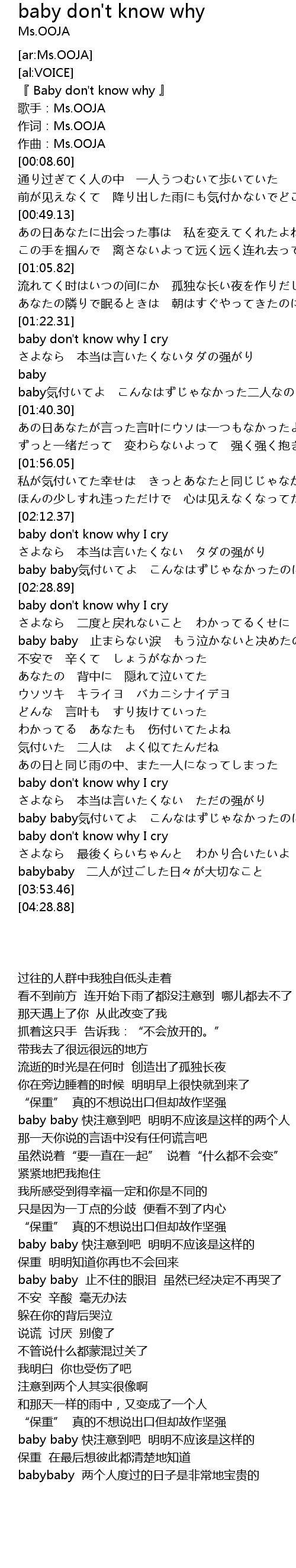 | [02:38.75] | baby baby 止まらない涙 もう泣かないと决めたのに |