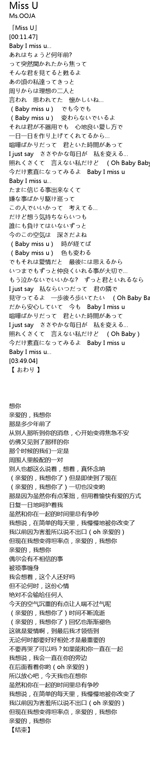| [00:03.47] | 「Miss U」 |