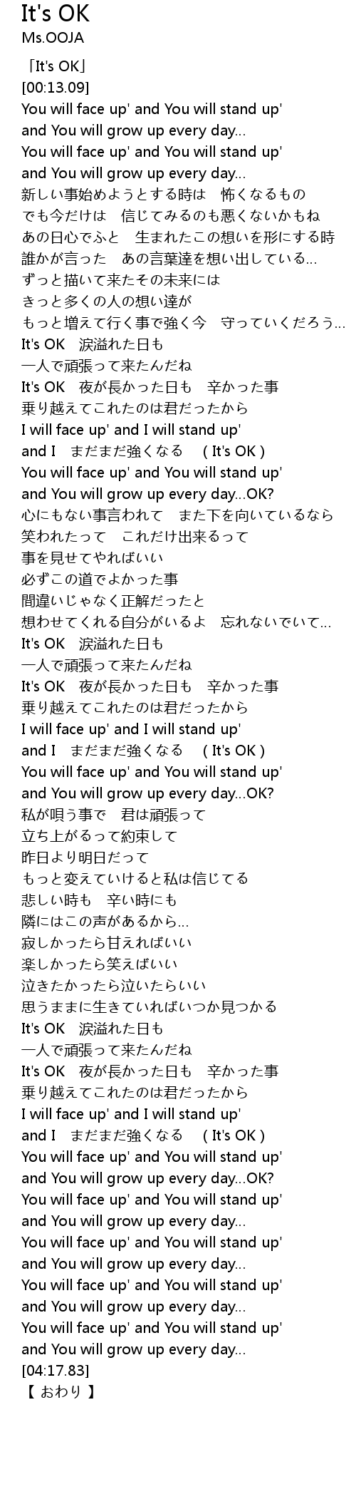 | [03:38.58] | and I まだまだ強くなる (It's OK) |