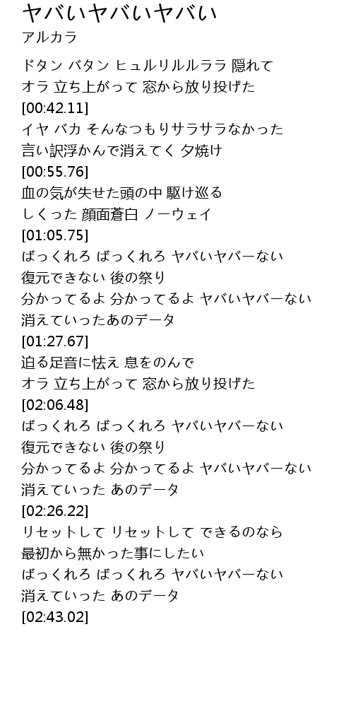 | [02:35.40] | ばっくれろ ばっくれろ ヤバいヤバーない |