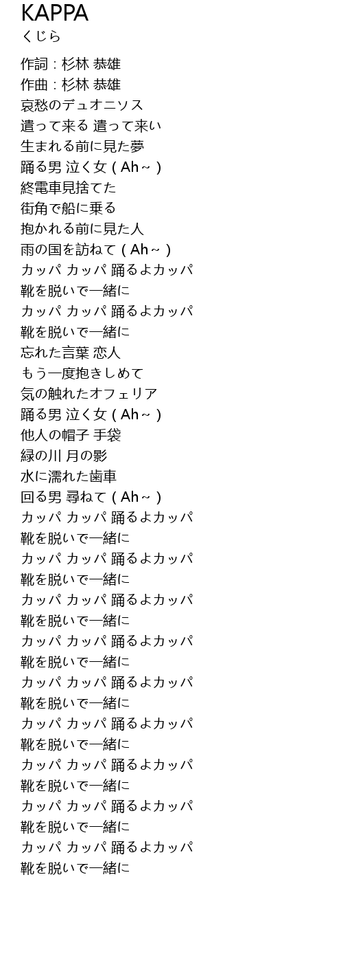 | [01:44.395] | カッパ カッパ 踊るよカッパ |