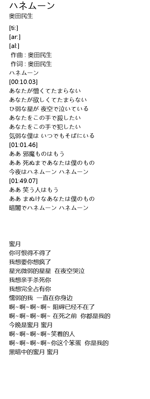 | [01:39.48] | 今夜はハネムーン ハネムーン |