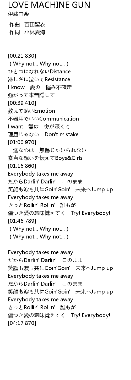 | [00:58.100] | 理屈じゃない Don't mistake |