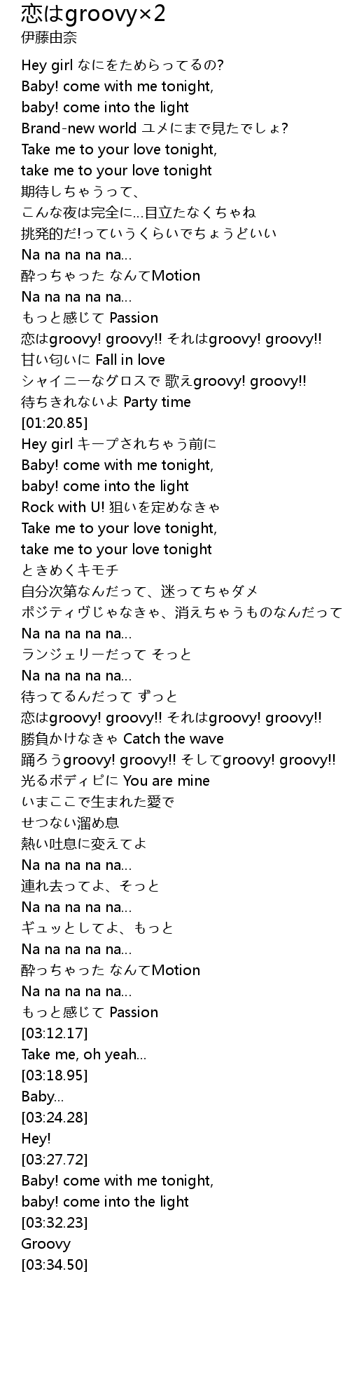 | [02:19.44] | 踊ろうgroovy! groovy!! そしてgroovy! groovy!! |