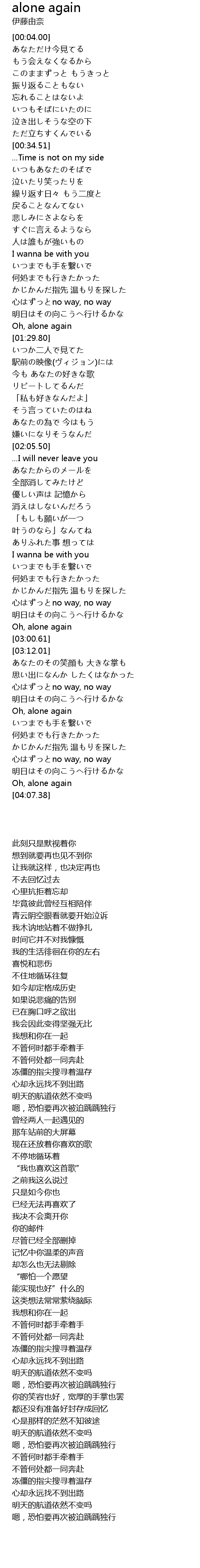 | [04:04.28] | Oh, alone again |