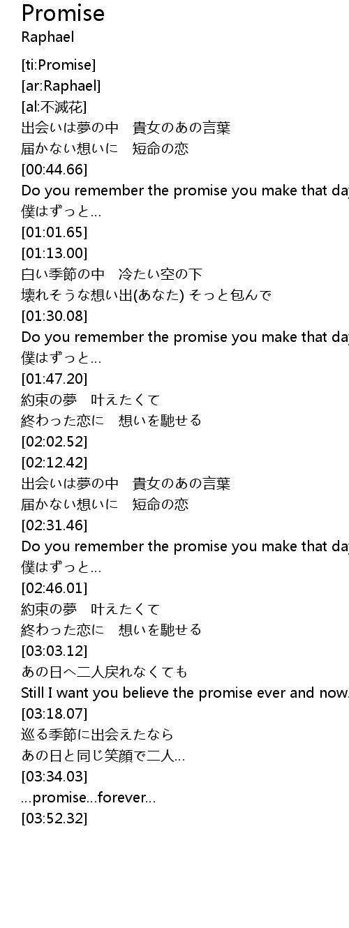| [03:11.72] | Still I want you believe the promise ever and now |
