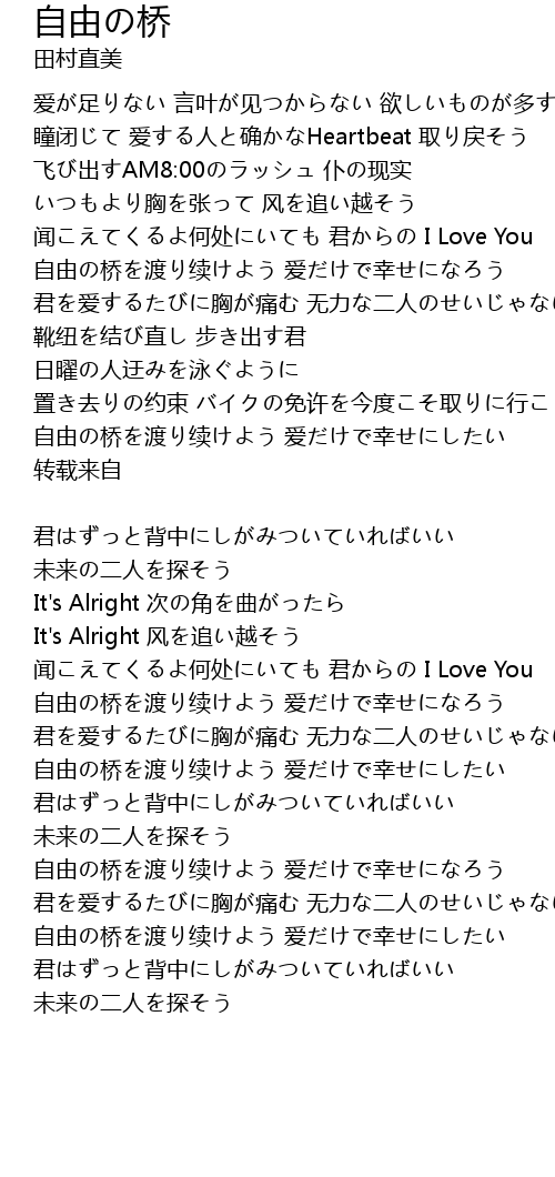 | 自由の桥を渡り续けよう 爱だけで幸せになろう | |