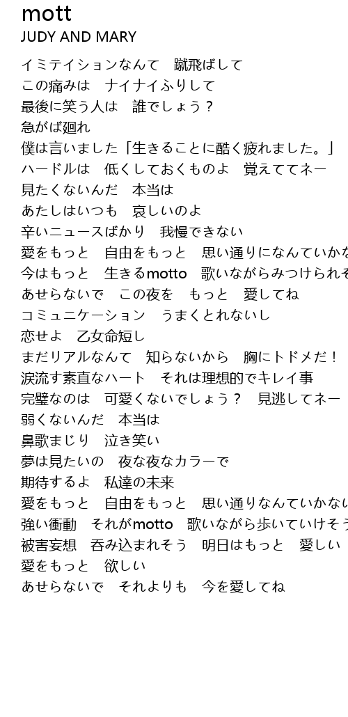 | 今はもっと 生きるmotto 歌いながらみつけられそうだね | |