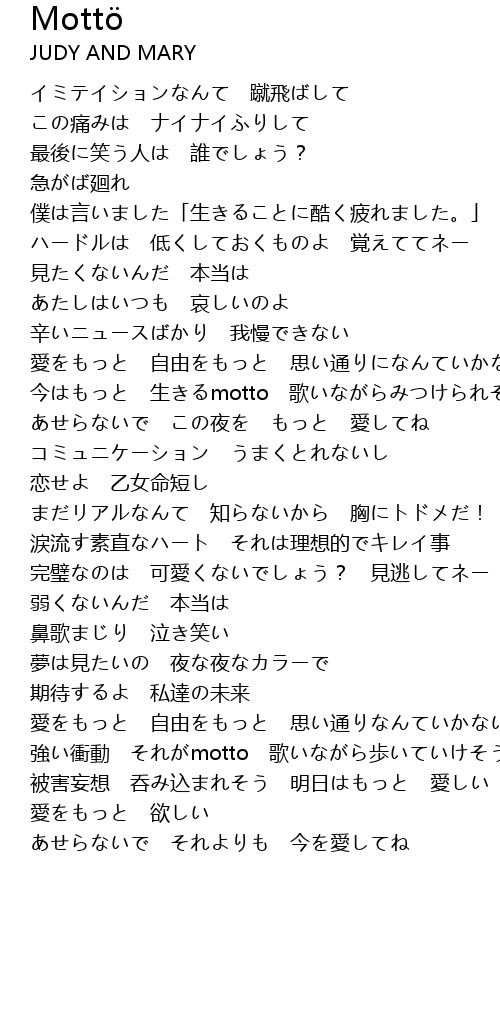 | 今はもっと 生きるmotto 歌いながらみつけられそうだね | |