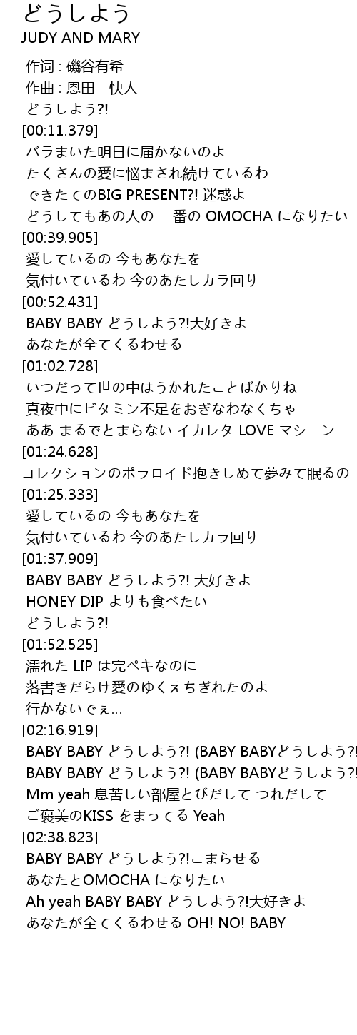 | [02:27.397] | BABY BABY どうしよう?! (BABY BABYどうしよう?!) |