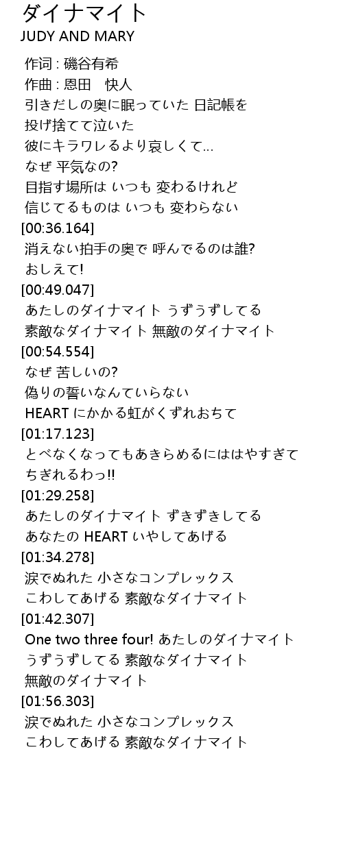 | [00:53.501] | 素敵なダイナマイト 無敵のダイナマイト |