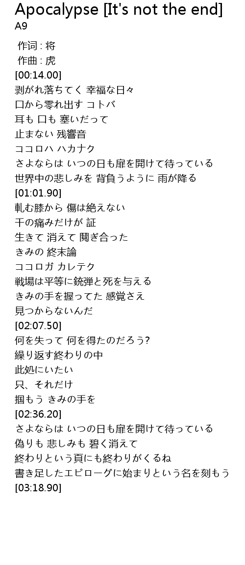 | [01:34.75] | きみの 終末論 |