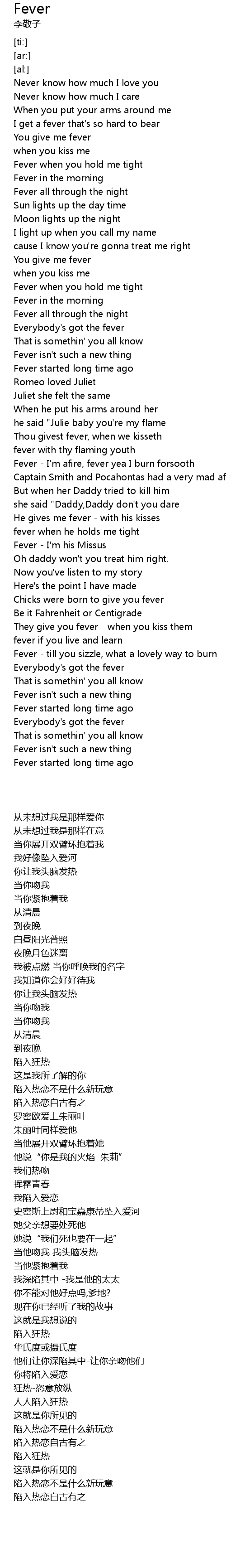 | [02:16.57] | Fever - I'm afire, fever yea I burn forsooth |