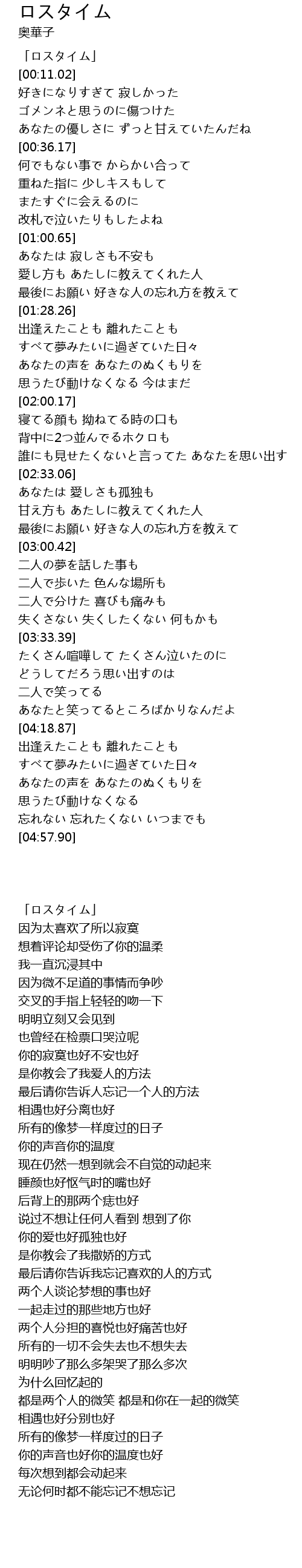 | [00:01.02] | 「ロスタイム」 |