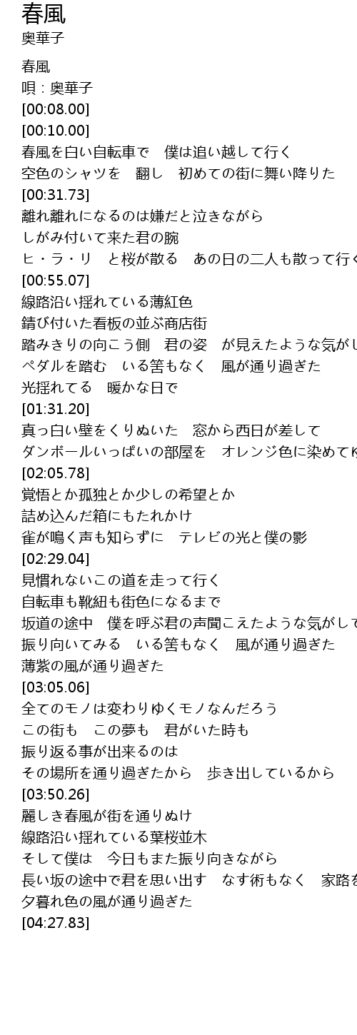 | [03:52.89] | 麗しき春風が街を通りぬけ |