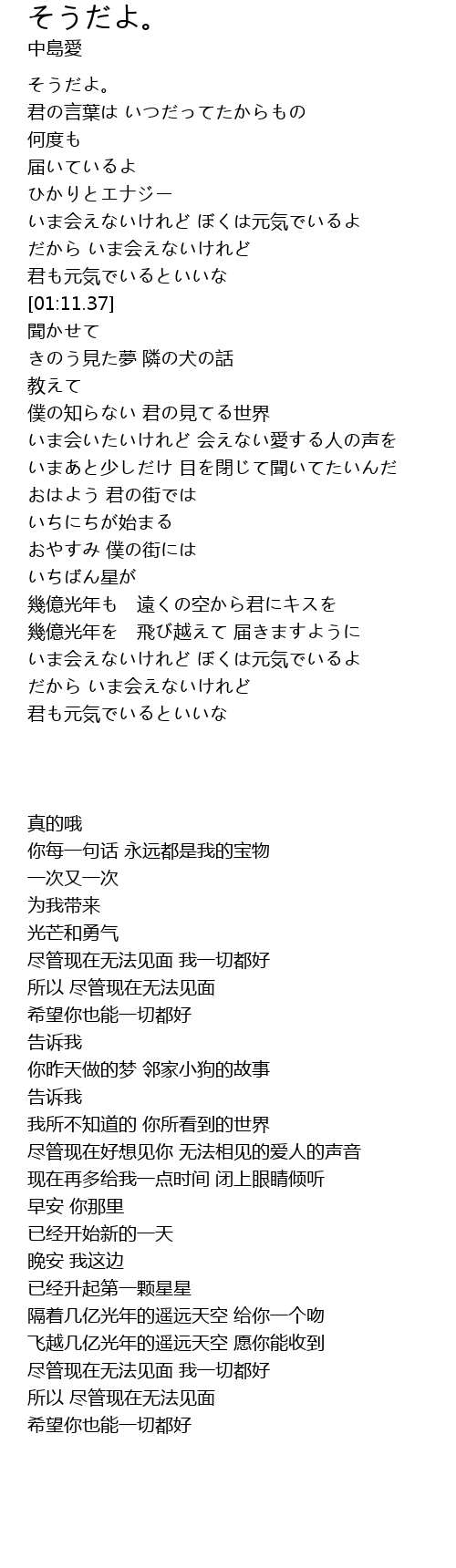 | [02:57.90] | 幾億光年を 飛び越えて 届きますように |