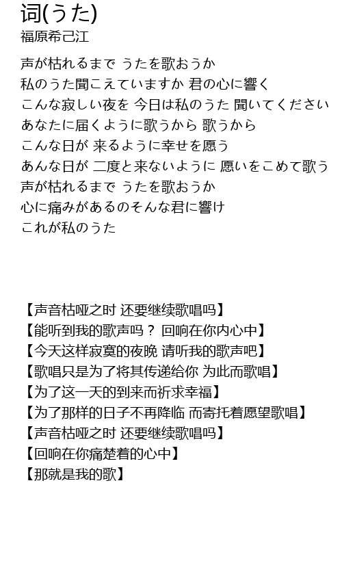 あんな日が 二度と来ないように 愿いをこめて歌う |