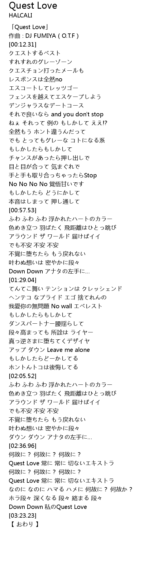 | [03:20.47] | Down Down 私のQuest Love |