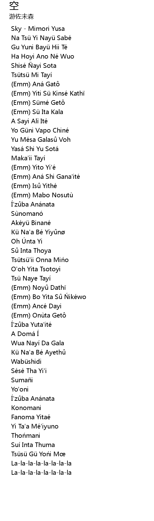 | [03:32.00] | Í'zûba Yuta'ité |