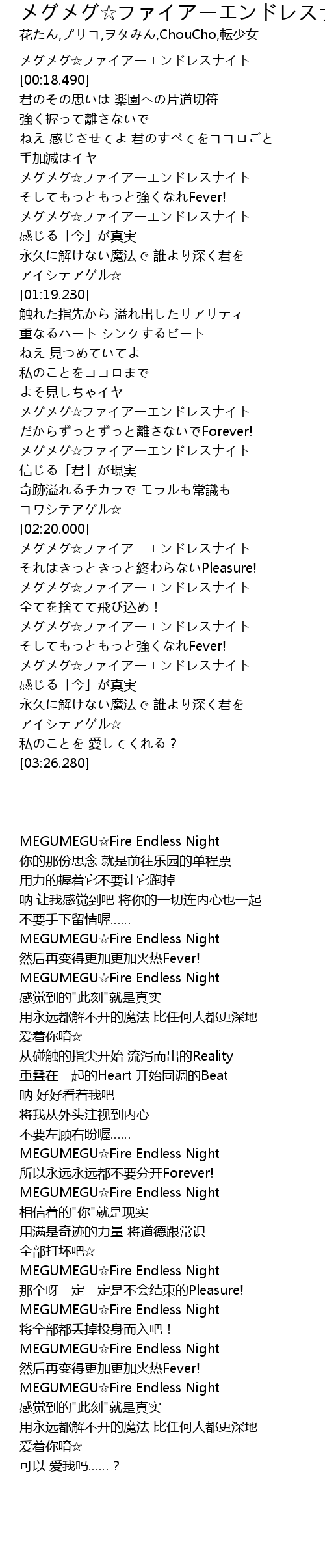 | [03:05.690] | メグメグ☆ファイアーエンドレスナイト |