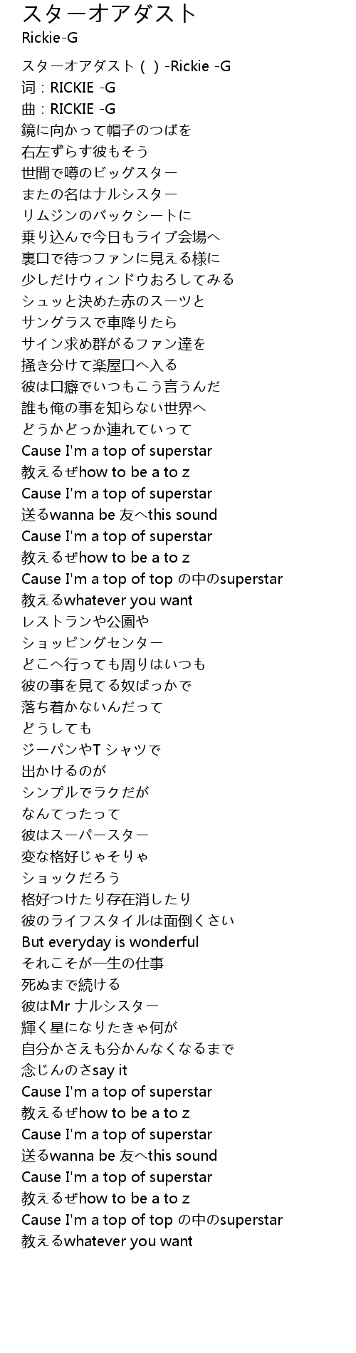 | [00:00.00] | スターオアダスト()-Rickie -G |