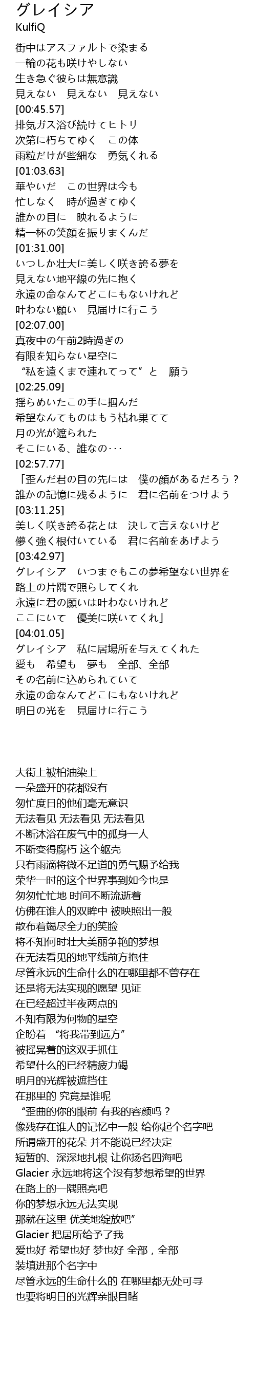 | [03:43.26] | グレイシア いつまでもこの夢希望ない世界を |