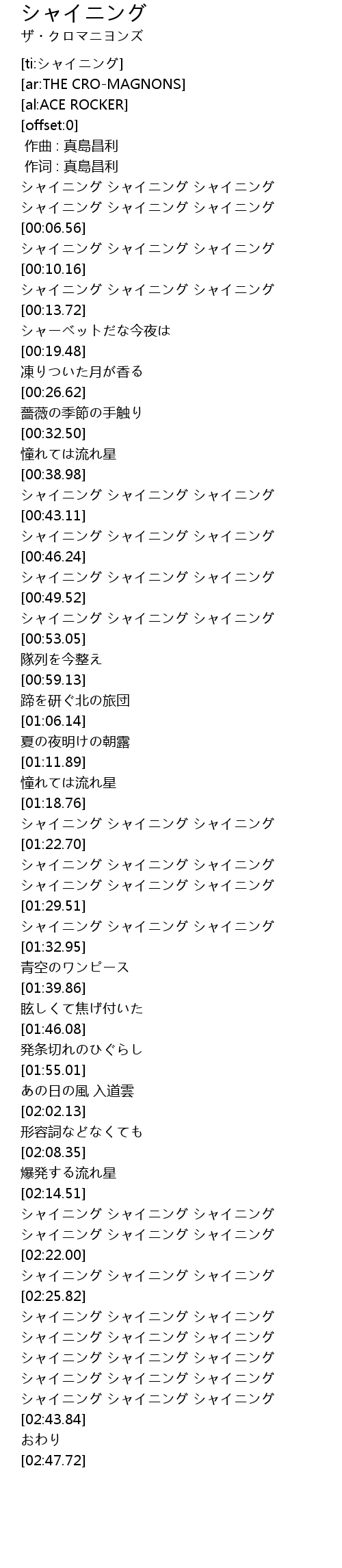 | [02:19.69] | シャイニング シャイニング シャイニング |
