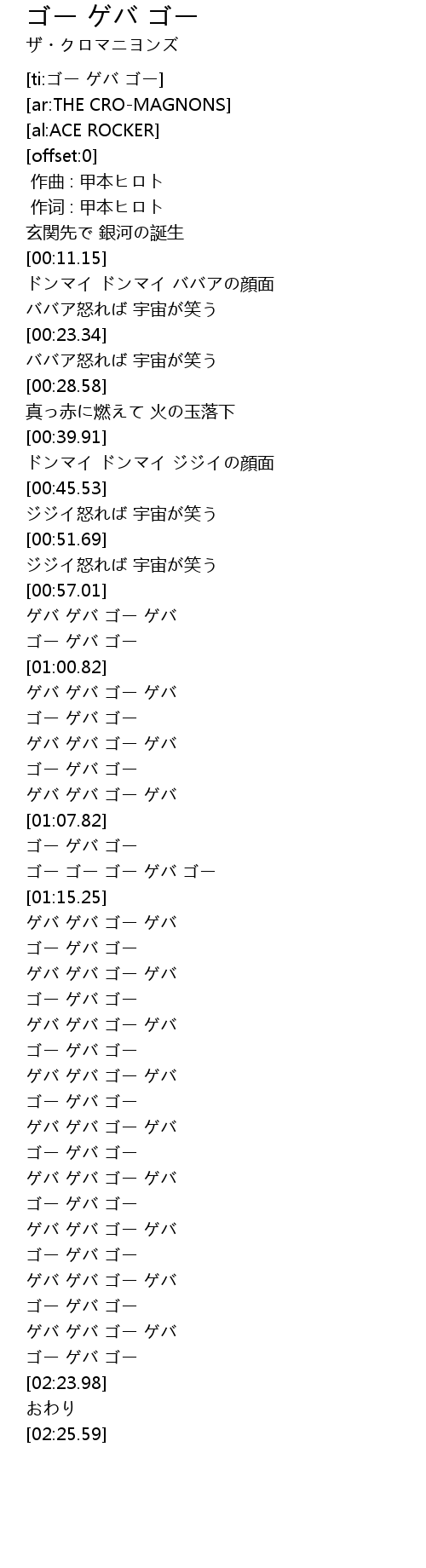 | [00:58.19] | ゲバ ゲバ ゴー ゲバ |