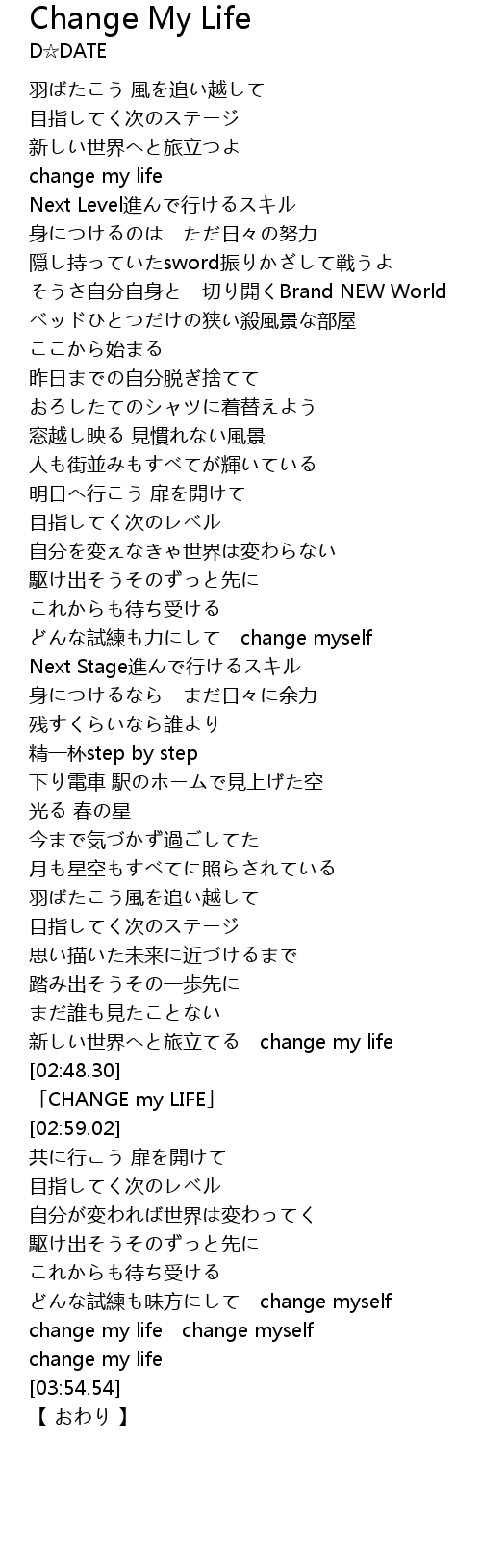 | [02:50.02] | CHANGE my LIFE |