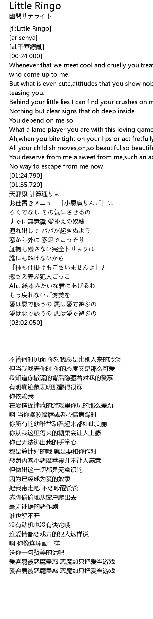 | [02:33.360] | 愛は悪で誘うの 悪は愛で遊ぶの |