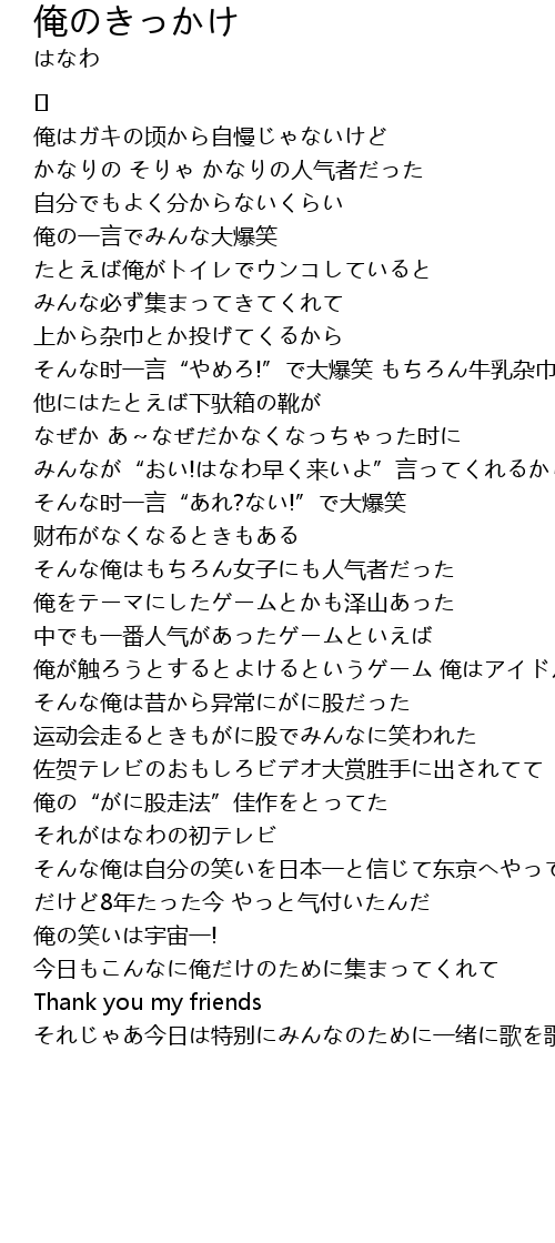 | Song | 俺のきっかけ |