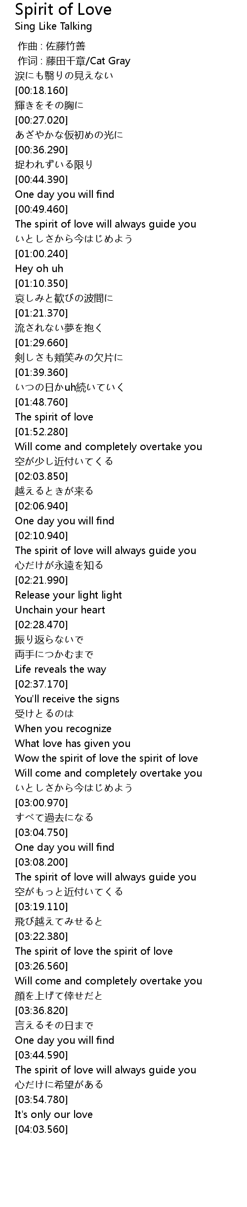 | [03:23.210] | The spirit of love the spirit of love |