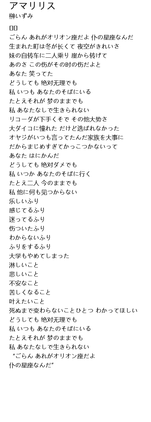 | Song | アマリリス |