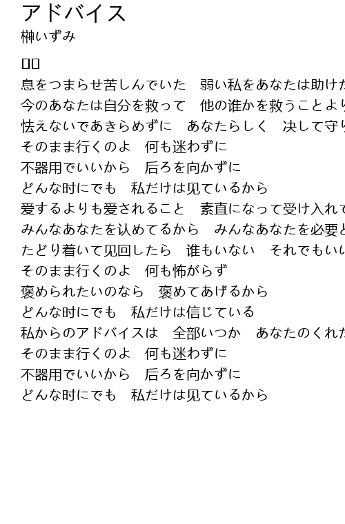 | 私からのアドバイスは 全部いつか あなたのくれたもの | |