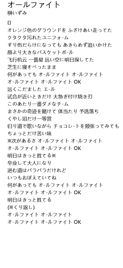 | ※次があるさ オ-ルファイト オ-ルファイト | |