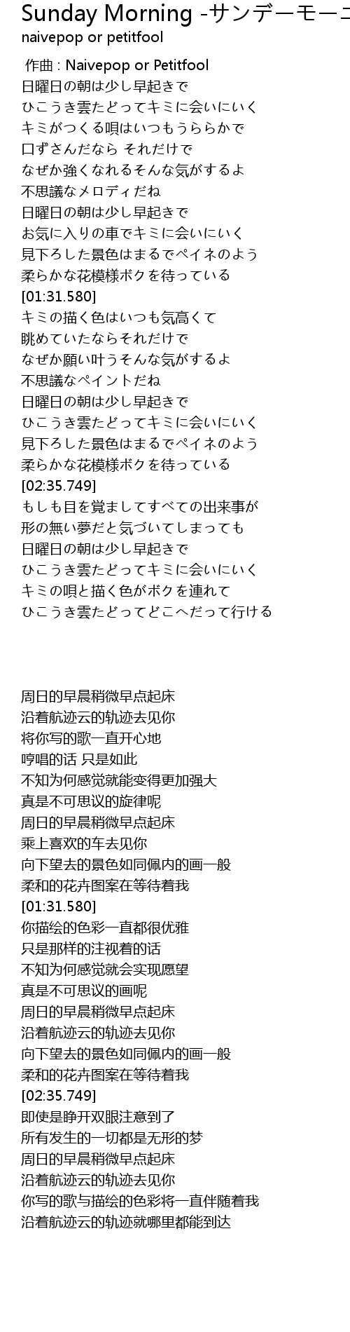 | [02:05.697] | 日曜日の朝は少し早起きで |