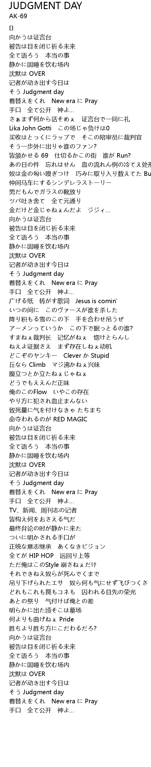 | Song | JUDGMENT DAY |