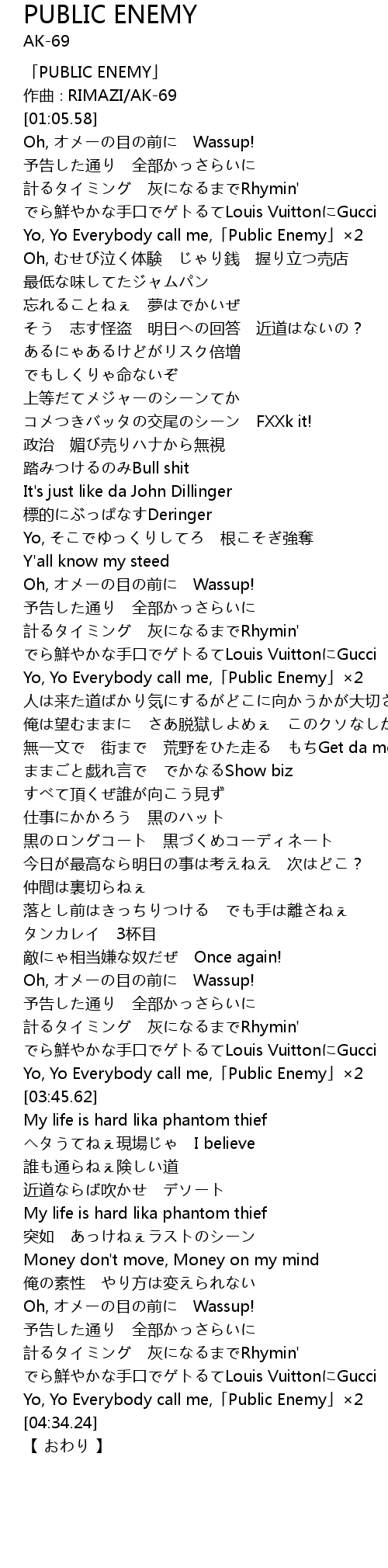 | [00:25.58] | 「PUBLIC ENEMY」 |