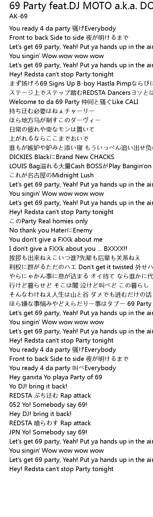 | Let' s get 69 party, Yeah! Put ya hands up in the air! | |