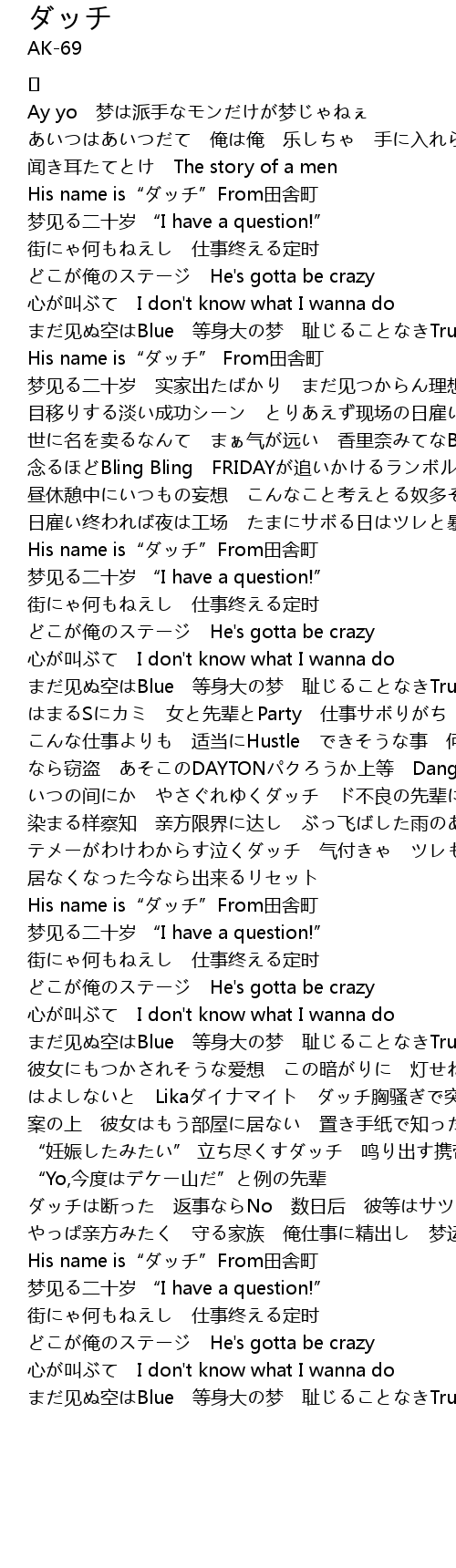 | Song | ダッチ |