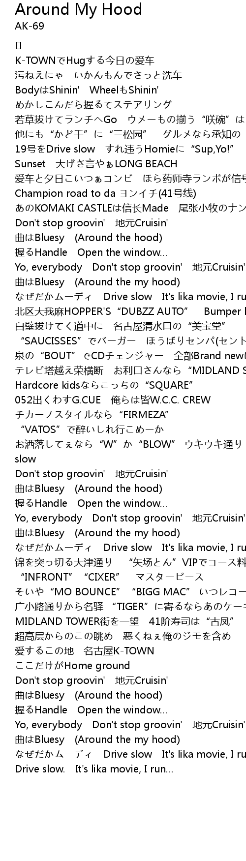 | Yo, everybody Don't stop groovin' 地元Cruisin' | |