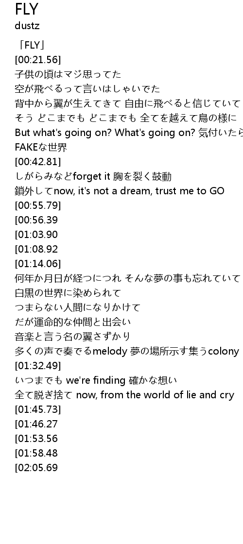 | [00:39.20] | But what's going on? What's going on? 気付いたら現実 FAKEな世界 |