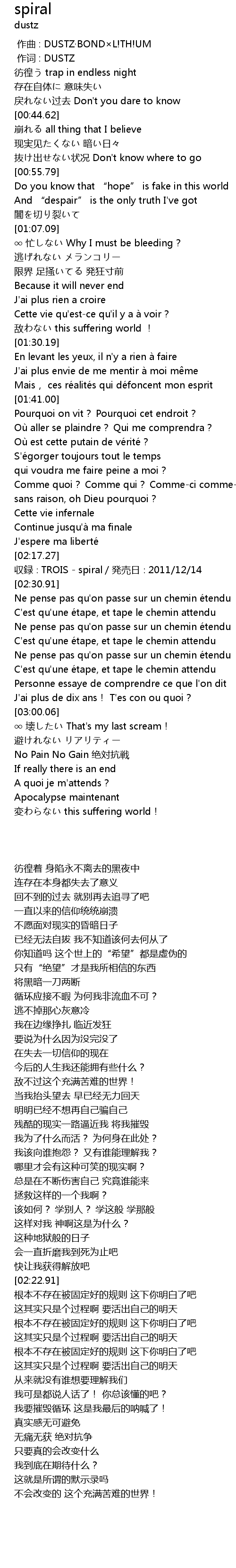 | [02:22.91] | shōu lù TROIS spiral fā mài rì 2011 12 14 |