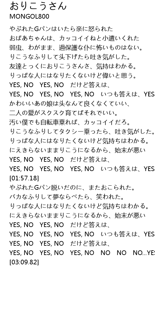 | [00:59.50] | YES, NO YES, NO YES, NO da YES NO |