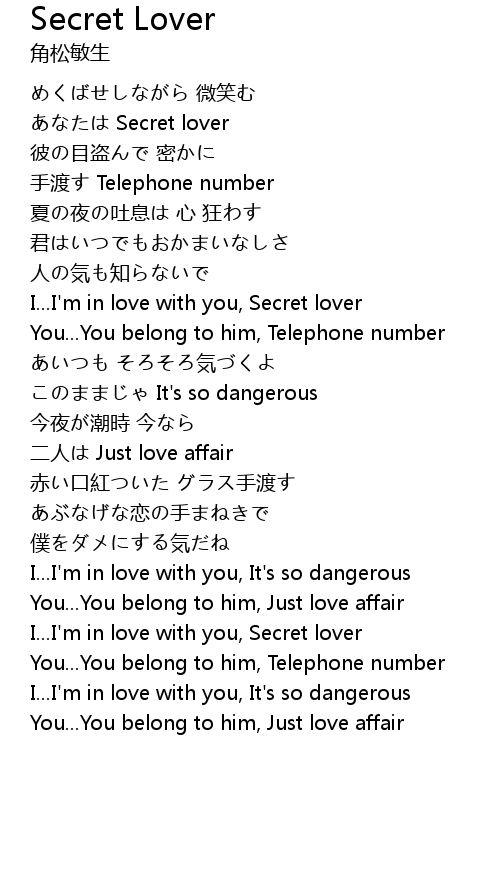| [03:09.903] | I... I' m in love with you, Secret lover |