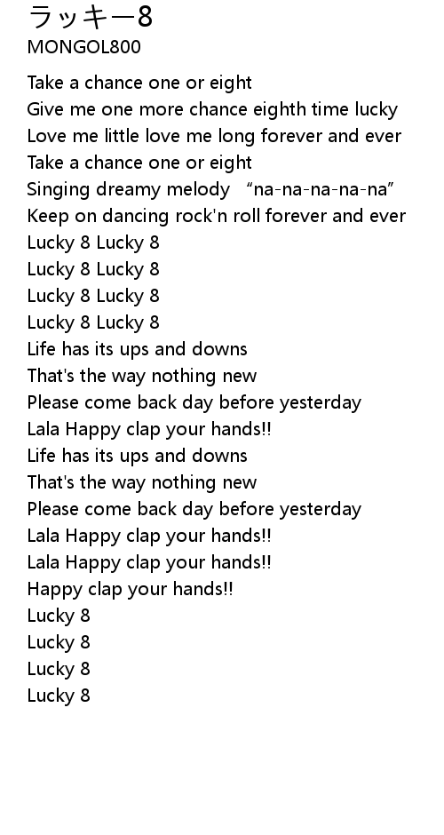 | [01:23.50] | Lucky 8 Lucky 8 |
