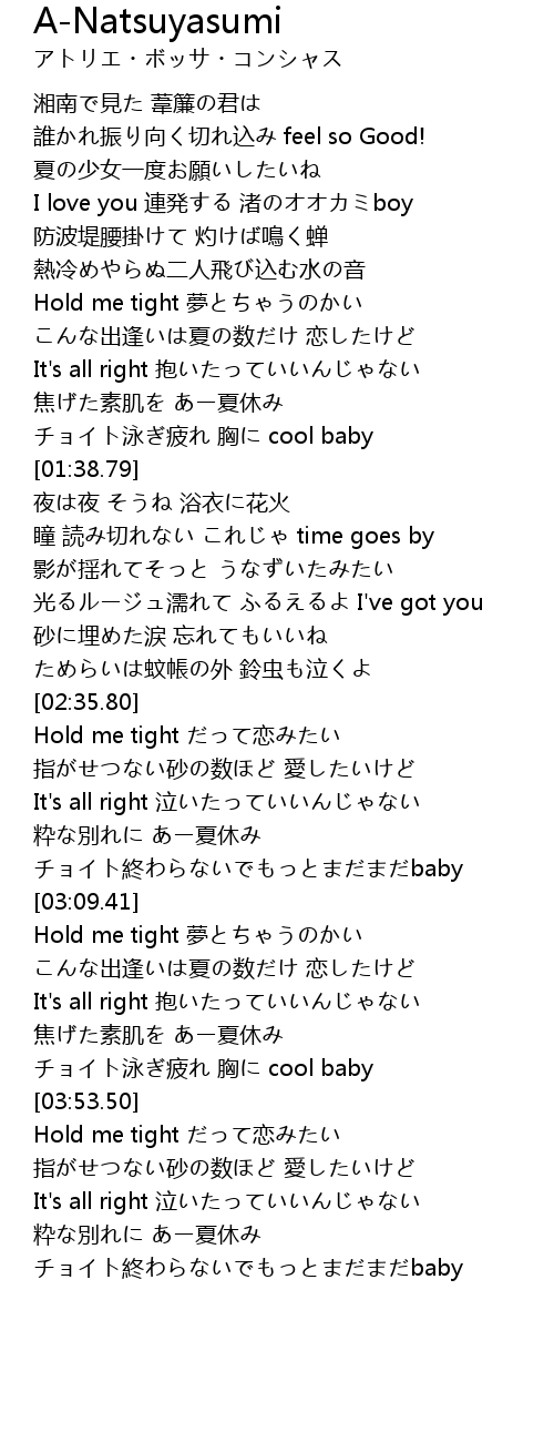 | [01:32.73] | チョイト泳ぎ疲れ 胸に cool baby |