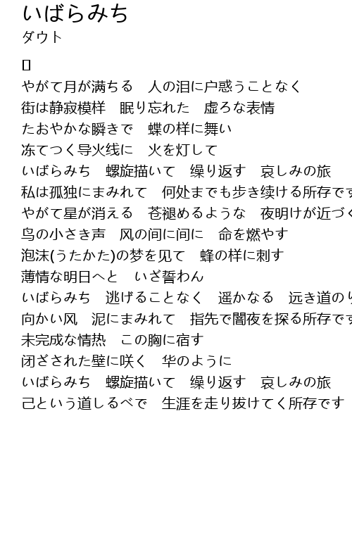 | いばらみち 螺旋描いて 缲り返す 哀しみの旅 | |