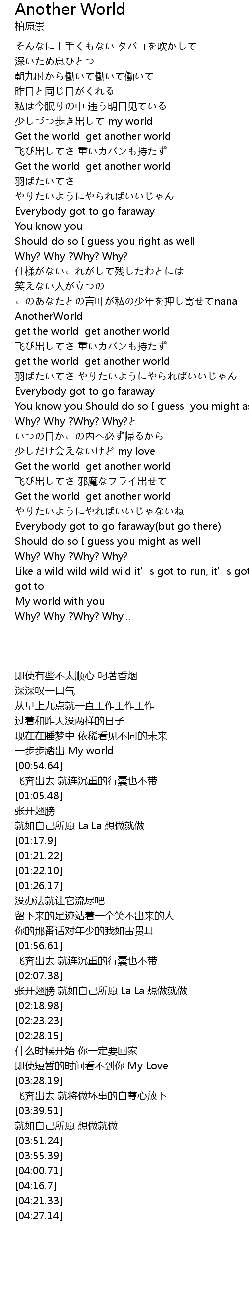 | [01:42.58] | このあなたとの言叶が私の少年を押し寄せてnana AnotherWorld |