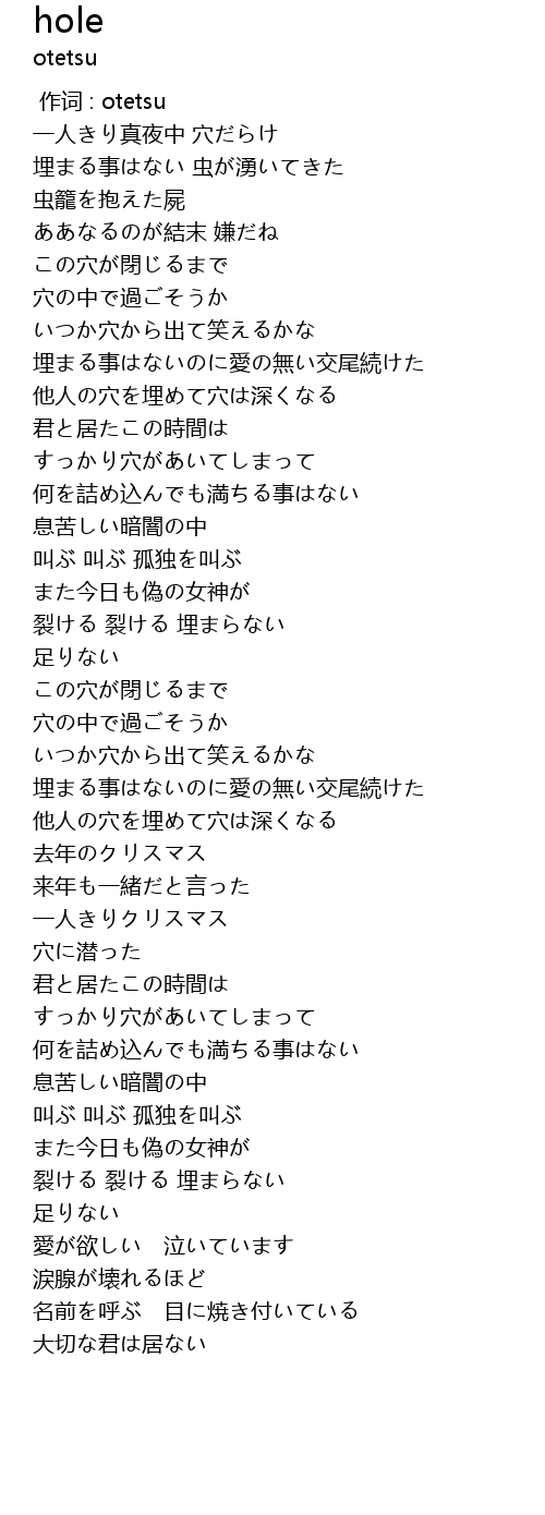| [01:02.94] | この穴が閉じるまで |